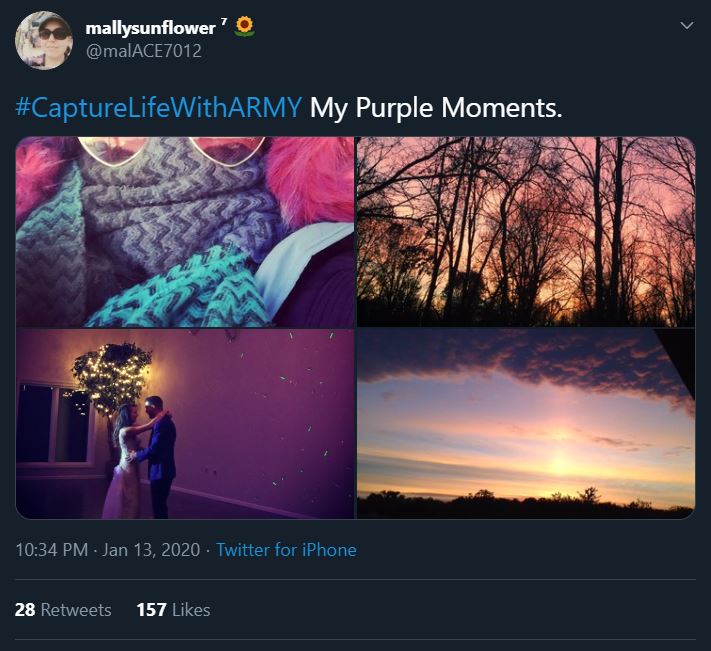 ARMY were given a series of prompts each week (comfort & love, I purple you, acceptance & appreciation) and asked to post their photos using the tag Capture Life With ARMY. Below is a small selection of the gorgeous photos ARMY posted – check the tag for more!