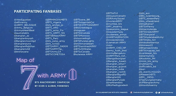 7 With ARMY was a campaign like no other. Thanks to the hard work of hundreds of ARMY who voluntarily run fanbases around the world, we mobilized on a scale unlike anything we’d ever seen before, and celebrated 7 years of BTS with 7 projects to giveback. Thank you ARMY. You proved once again why you deserve the title AnpanARMY.