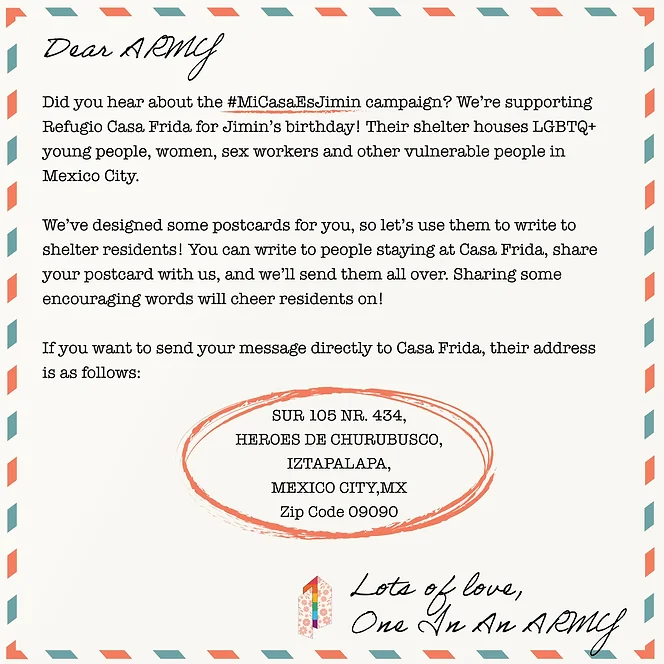 In addition to raising money for Casa Frida we also gave ARMY the opportunity to write postcards to the people staying at Casa Frida.
