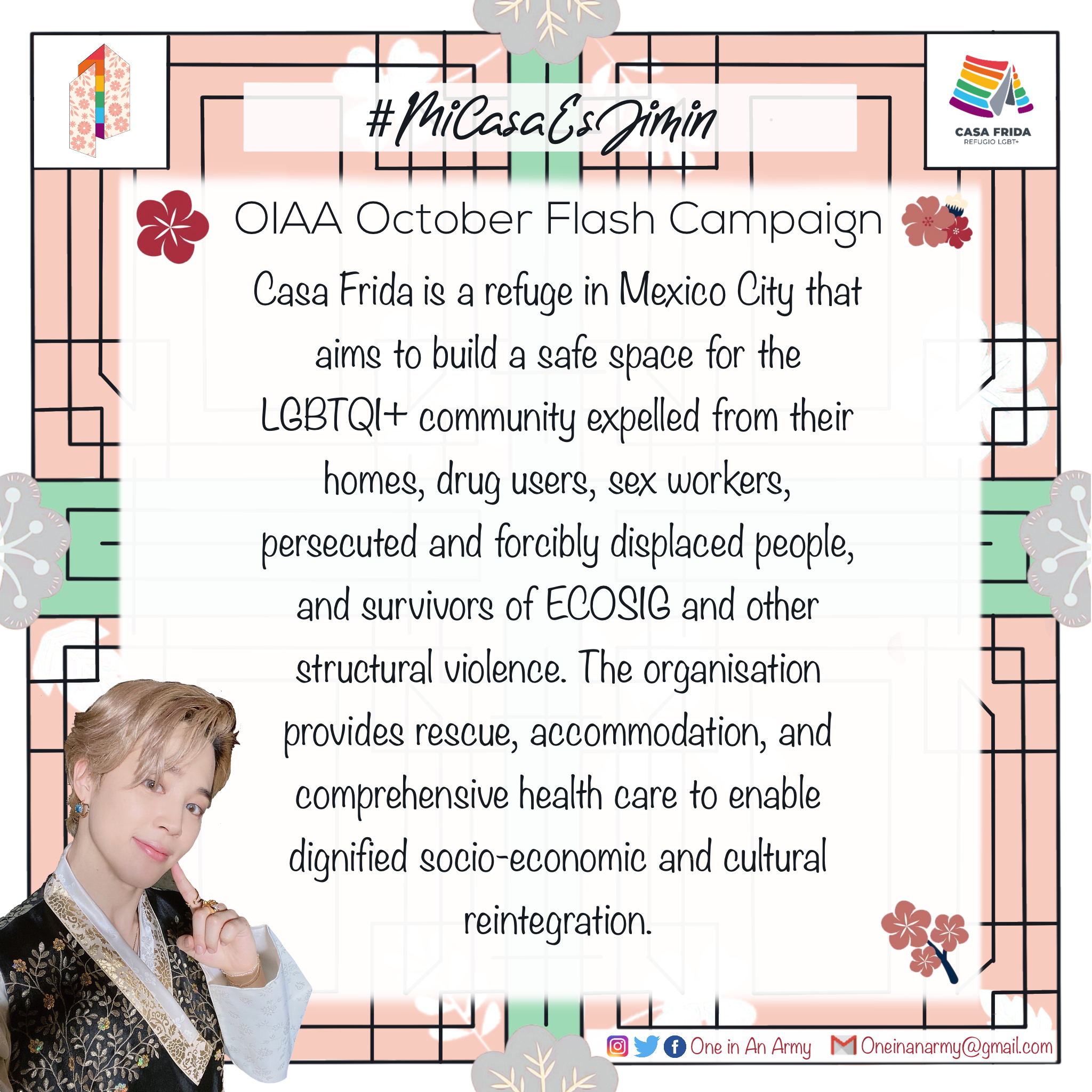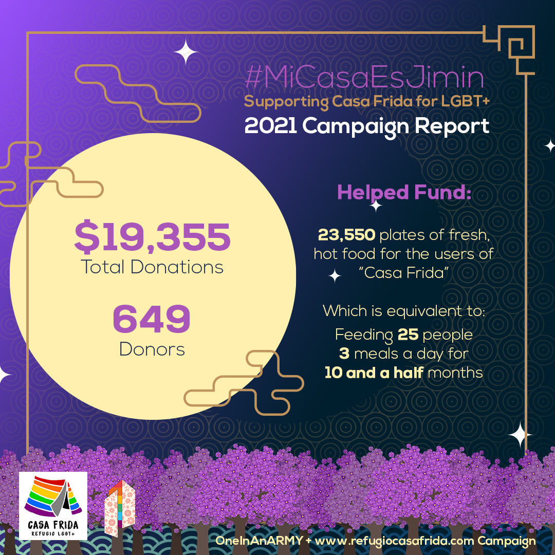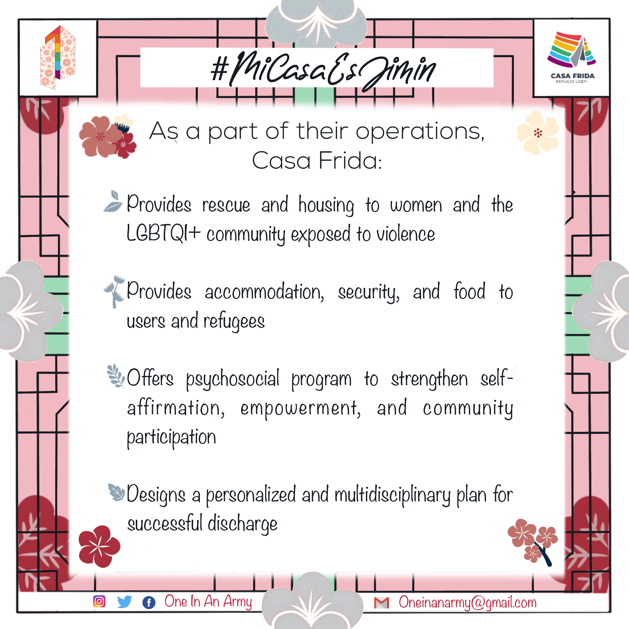 One In An ARMY is extremely proud to announce the results of our October 2021 campaign, Mi Casa Es Jimin, benefiting Casa Frida in honour of Jimin’s birthday!