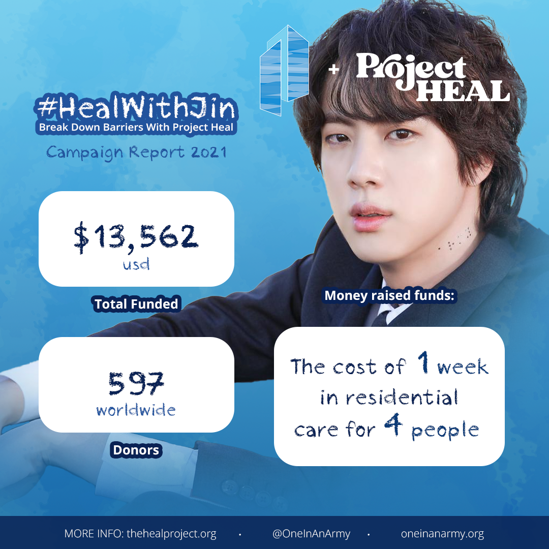 One In An ARMY is extremely proud to announce the results of our first December 2021 flash campaign, Heal With Jin, benefiting Project Heal in honour of Seokjin’s birthday!