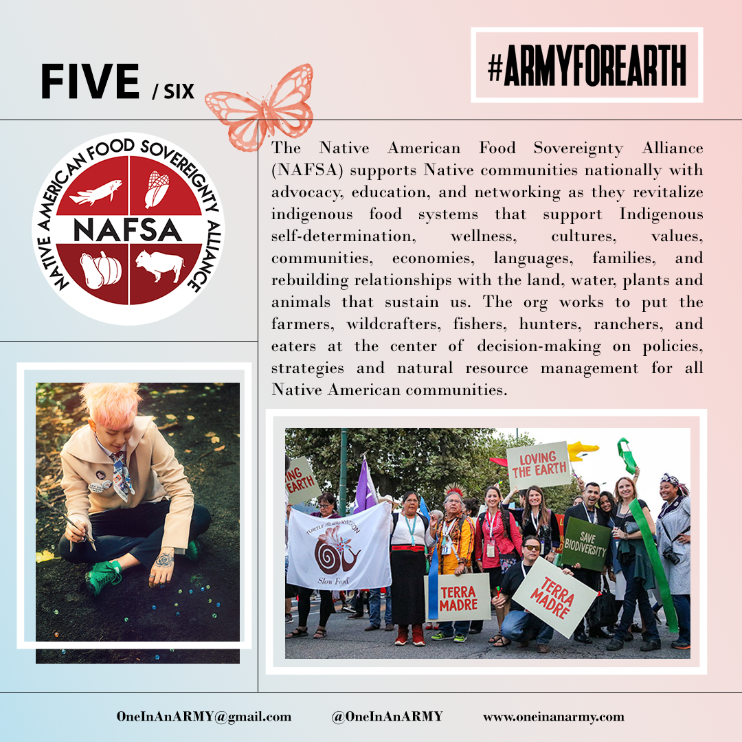 Native American Food Sovereignty Alliance: Are an organization dedicated to restoring the food systems that support Indigenous self-determination, wellness, cultures, values, communities, economies, languages, and families while rebuilding relationships with the land, water, plants, and animals that sustain us.