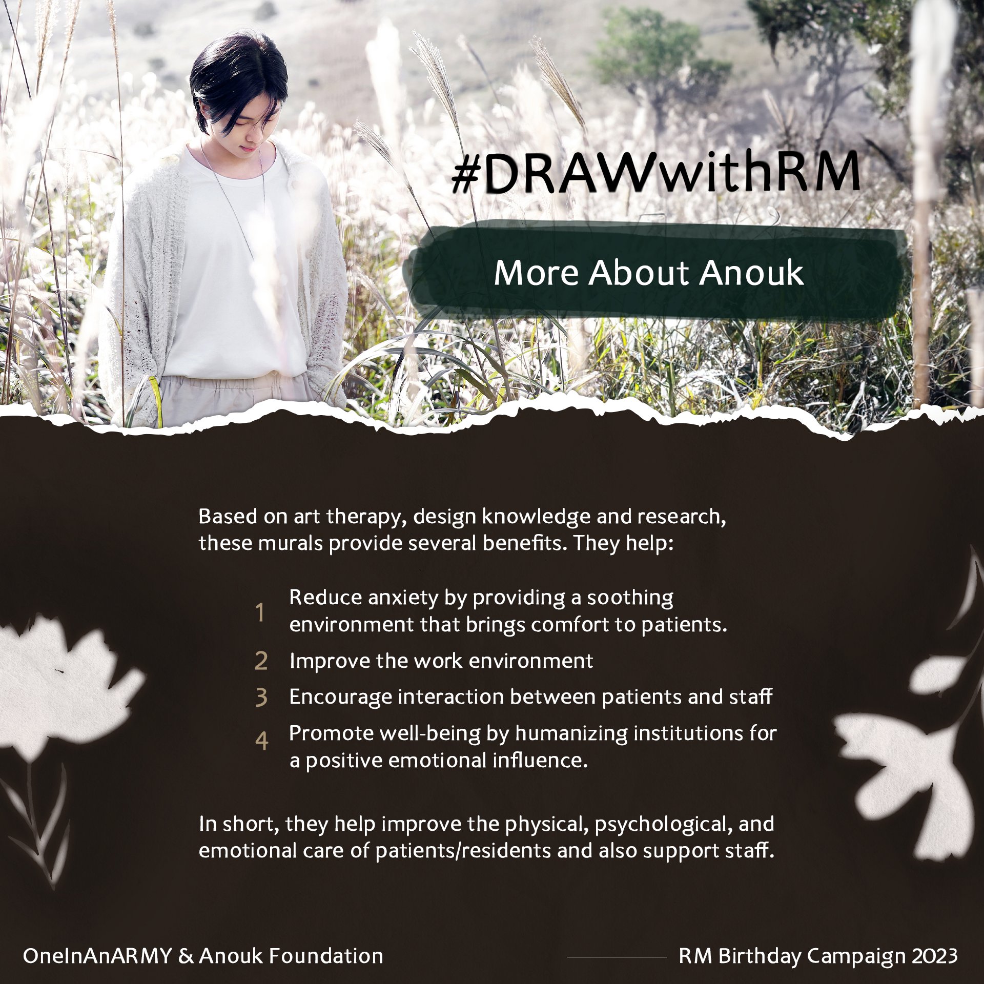 One In An ARMY is extremely proud to announce the results of our September 2023 flash campaign, Draw With RM, benefiting Anouk Foundation in honor of RM’s birthday!