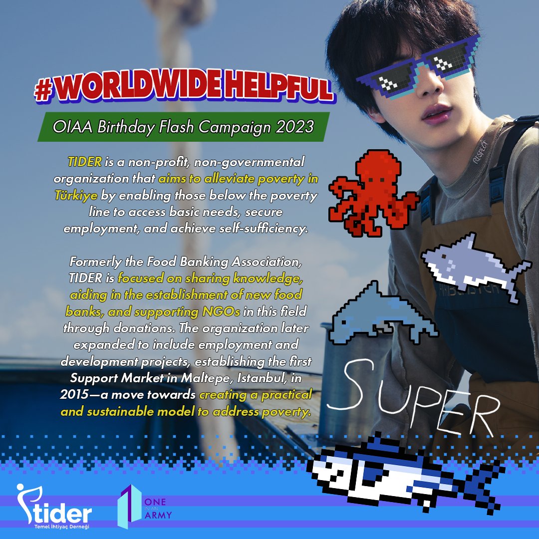 One In An ARMY is extremely proud to announce the results of our December 2023 flash campaign, Worldwide Helpful, benefiting Temel İhtiyaç Derneği TİDER (Tidersosyal) in honor of Jin’s birthday!